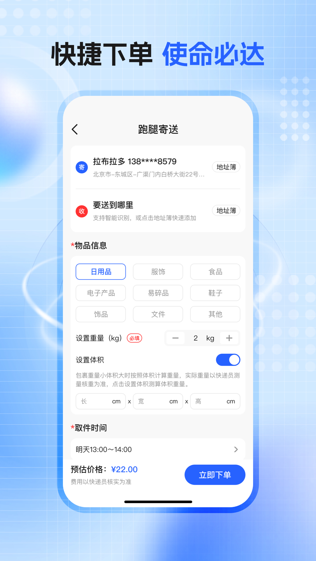 一键下单 跑腿闪送